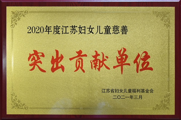 其中,江蘇無錫朝陽集團股份有限公司榮獲“2020年度江蘇婦女兒童慈善突出貢獻單位”榮譽稱號。