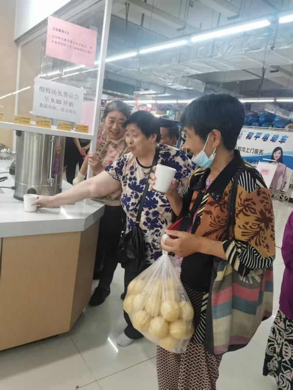隨著大暑節(jié)氣的來臨,高溫天氣持續(xù)肆虐,給市民的日常生活帶來了諸多不便。在此酷熱之際,朝陽農貿市場展現出濃濃的人文關懷,市場積極組織三樓錫城緣快餐店老板開展便民服務,為無錫市民送上一份夏日清涼。 每天上午9點30分開始,三樓錫城緣快餐店門口便排起了有序的隊伍,工作人員熱情地為前來市場購物的老百姓免費發(fā)放酸梅湯。一杯杯酸甜可口的酸梅湯,不僅驅散了夏日的燥熱,更讓市民們感受到了朝陽農貿市場的愛意與關懷。 此次免費發(fā)放酸梅湯的活動,是朝陽農貿市場踐行便民服務理念的生動體現。市場未來還將根據季節(jié)變化和市民需求,推出更多貼心服務。朝陽農貿市場用實際行動詮釋著責任與擔當,讓每一位走進朝陽農貿市場的市民都能感受到家一般的溫暖。