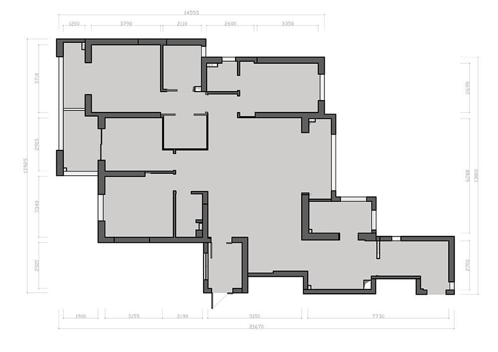 公共區(qū)域的踢腳線采用的是與墻齊平的工藝做法。在墻面開槽,嵌入石材踢腳線,對墻面平整度和工人師傅的手藝要求更高。